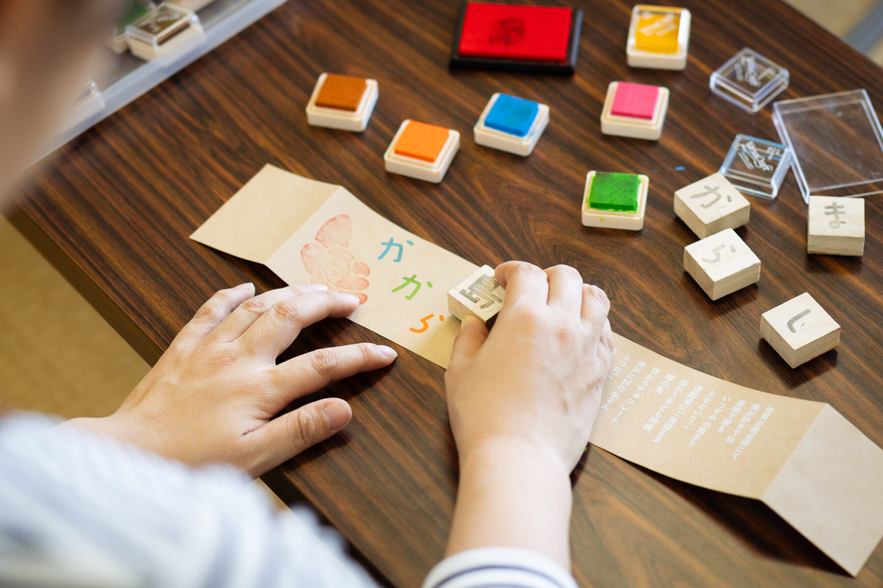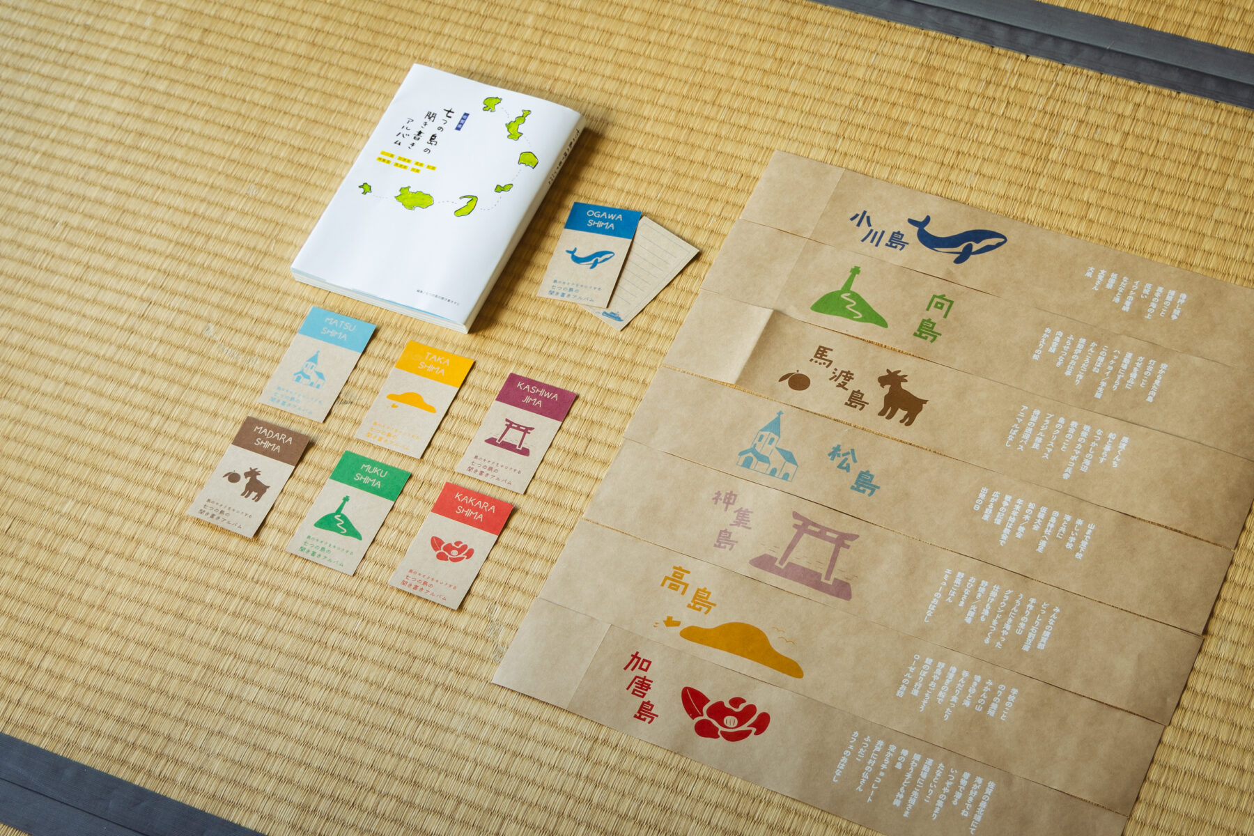 メッセージカードにもなっている七つの島ごとのしおりに、自分でスタンプを押しオリジナル作品を作れる帯。工夫が詰まっています!