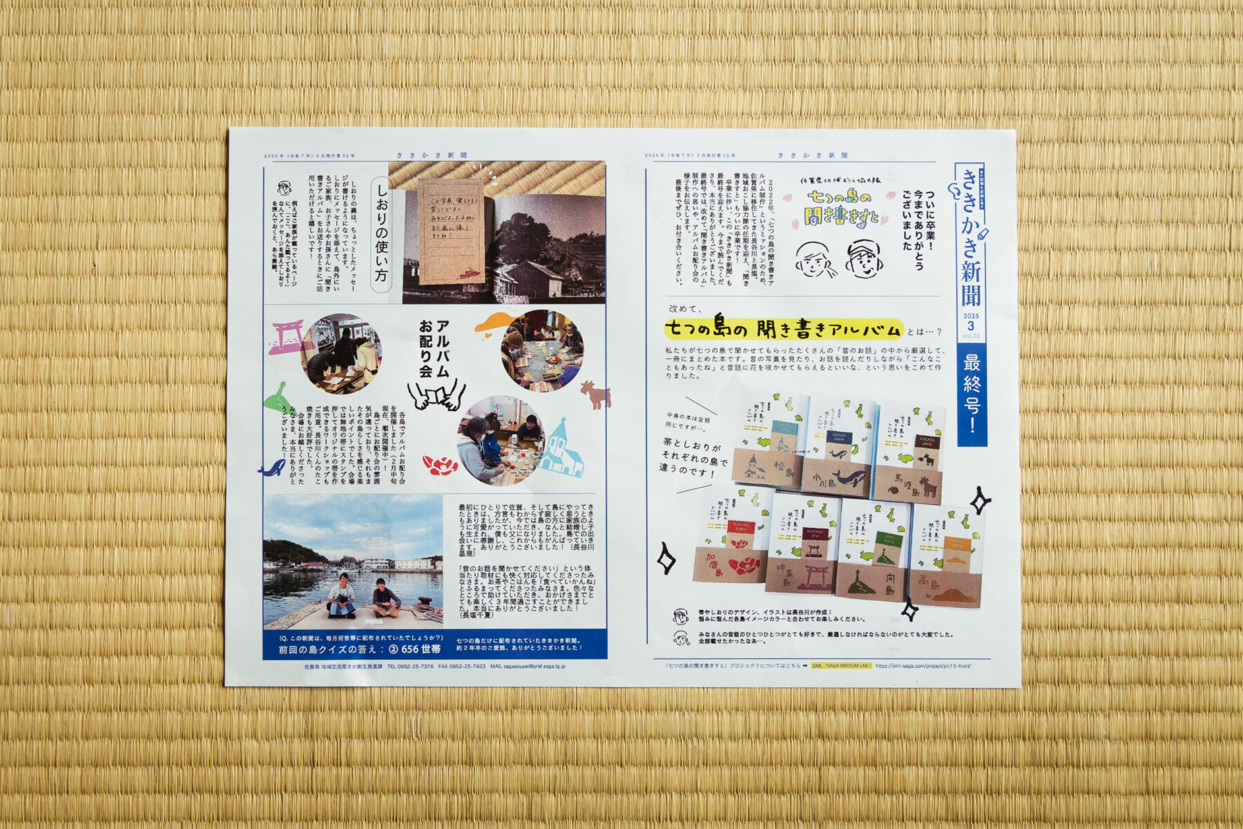 長塩 最初の頃は「誰だこいつら」みたいなところから始まって、取材って言うと向こうも身構えられたりしていたけれど、今はそういうのもなくなって気軽に受けてくれるようになったよね。3年間やってきて、めちゃくちゃ存在と仕事が浸透して、島民さんと一緒に地域新聞を発行してる感じもちょっと出てきて。最後はもう感謝の気持ちでいっぱいでした!